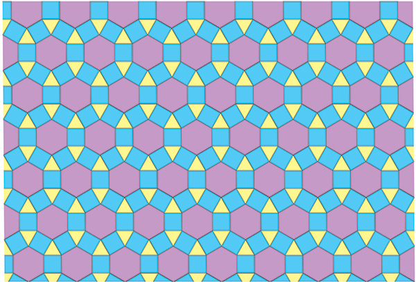 Ce pavage, que l’on trouve dans la ville de Nîmes, dans un temple dédié à Diane, est constitué de triangles équilatéraux, de carrés et d’hexagones réguliers.