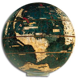 Le tracé de la côte Est de cette si nouvelle Amérique correspond aux relevés faits par le navigateur florentin au cours de ses quatre expéditions et le tracé des fleuves comme l’Amazone ou l’Orénoque, rectiligne, nous semble aujourd’hui un peu naïf. La fabrication de ce magnifique objet est attribuée au chanoine cartographe Martin Waldseemüller (1470-1520), animateur du « gymnase vosgien de Saint-Dié ». C’est ce groupe qui a édité en 1507 Cosmographiae introductio, comportant à la fois une traduction de la méthode mathématique de cartographie de Ptolémée et des récits de voyages de… Vespucci, précisément, le tout, imprimé à Saint-Dié (Vosges) et agrémenté d’une vaste mappemonde constituée de douze feuilles avec, en prime, une minuscule sphère peinte de dix centimètres de diamètre, véritable ouvrage multimédia avant l’heure.