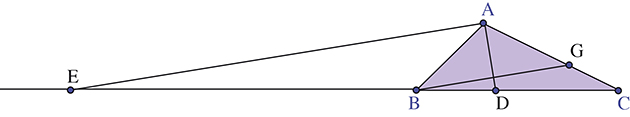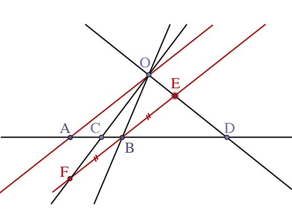 Si (BG) est parallèle à (AE), en jumelant les faits que le faisceau des quatre droites (AE), (AB), (AD), (AC) est harmonique,